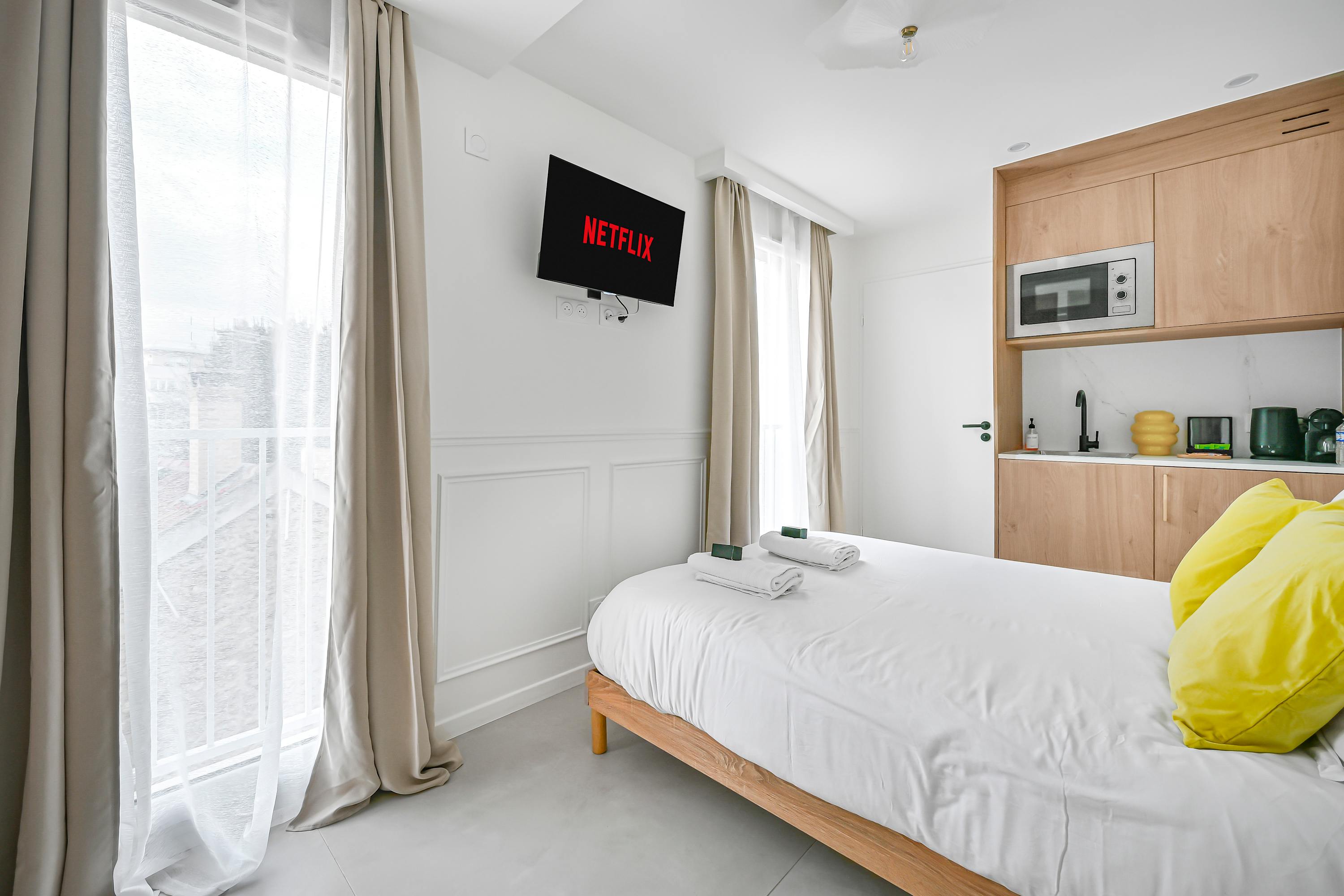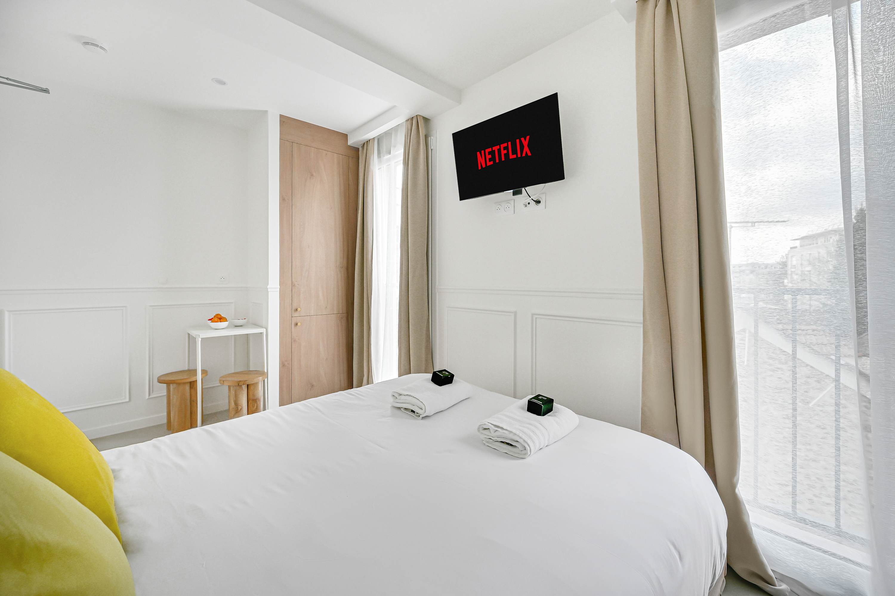 Vous trouverez une chambre spacieuse avec un lit double équipé d'une literie haut de gamme, garantissant des nuits paisibles. Notre suite est doté d’une télévision avec accès à Netflix, parfait pour vos moments de détente.